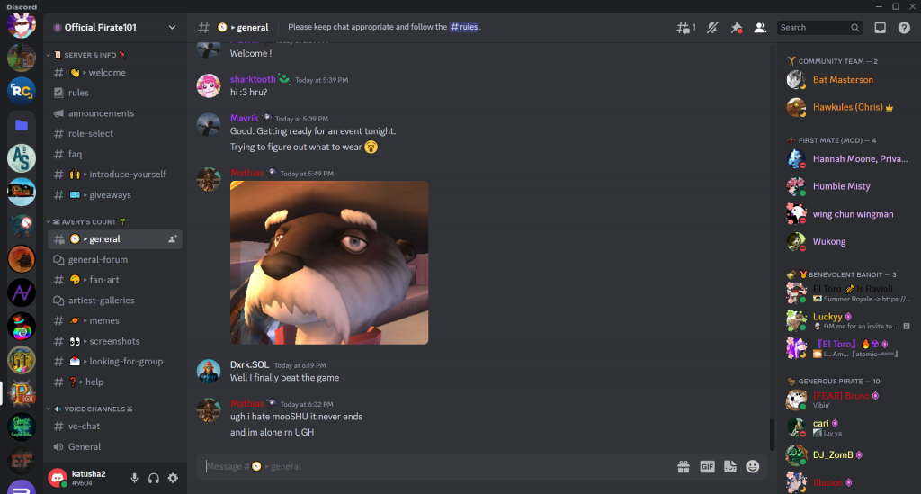 Discord is a great platform. If for some reason you have not had the opportunity to interact with it, I would suggest checking it out. Discord allows for free, instant voice and text chat with a large amount of people at once. Each “server” is usually dedicated to one topic or run by one organization and contains multiple “channels” for different subtopics. The whole thing is wrapped together in a clean interface where you can choose between different servers or even private messages to individual other users.